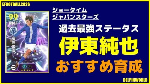 今回は「ショータイム:ジャパンスターズ」で登場した日本代表FW「伊東純也」のおすすめ育成をご紹介します。 イーフト2026|過去最強ステータス「伊東純也」おすすめ育成【ショータイム:ジャパンスターズ】 イーフト2026|過去最強ステータス「伊東純也」…